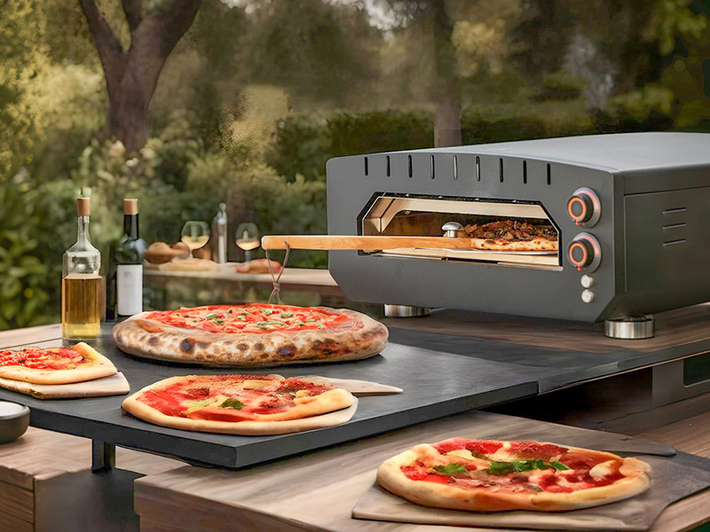A baking oven device specifically designed for baking pizza, widely used in homes, restaurants, and bakeries.