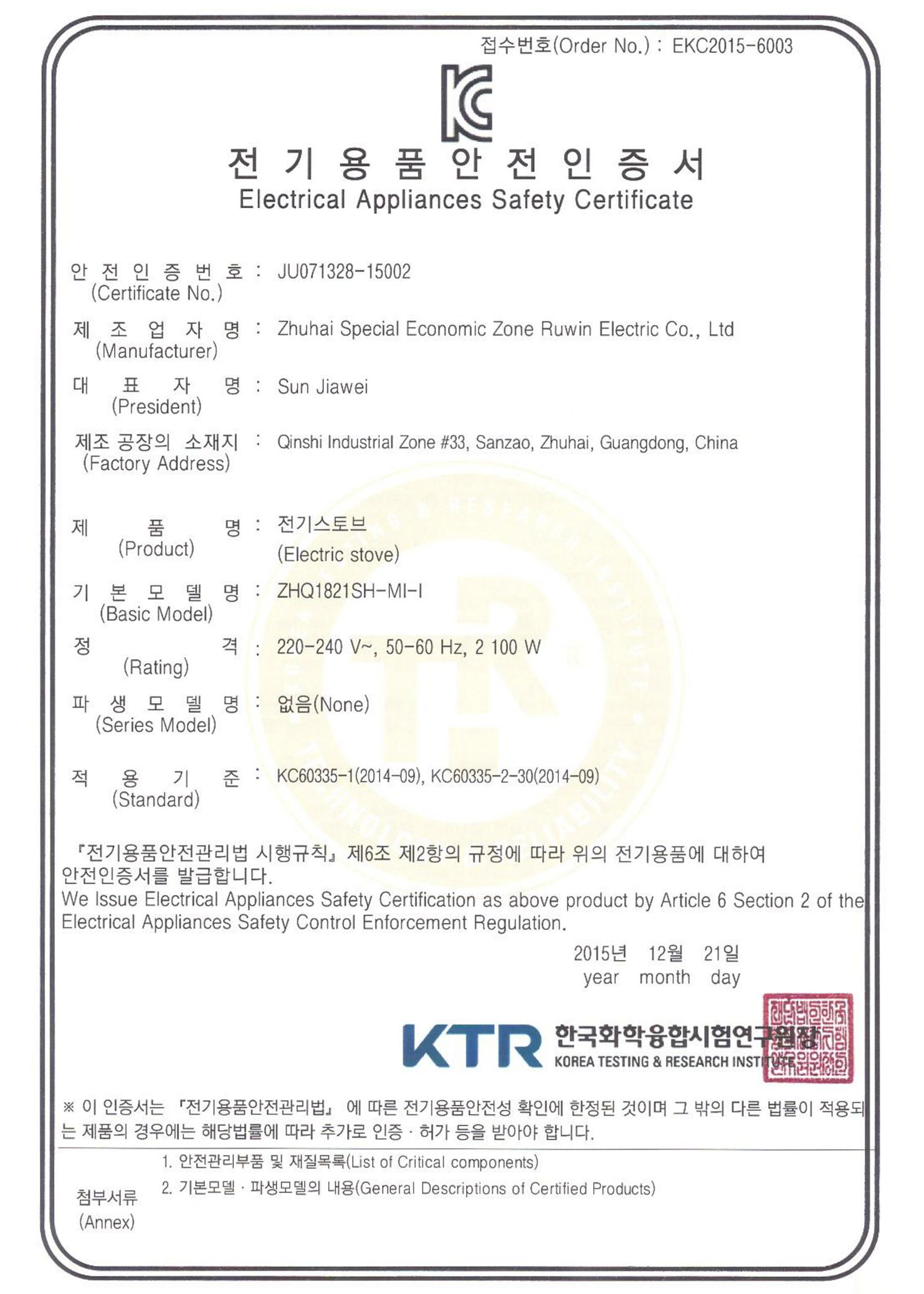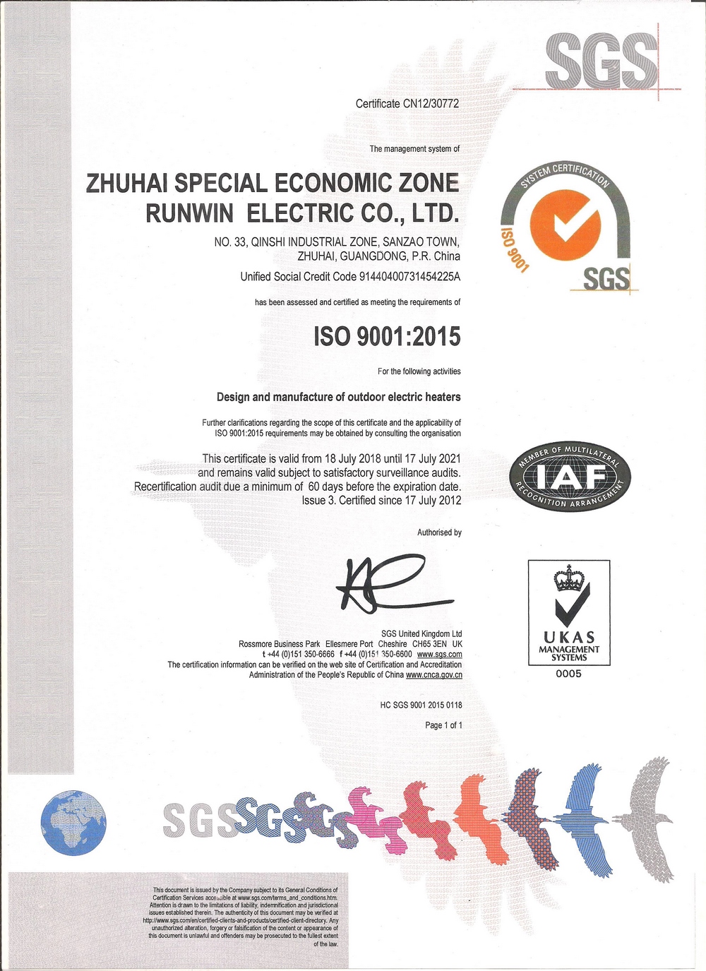 ![]() SGS Certification |