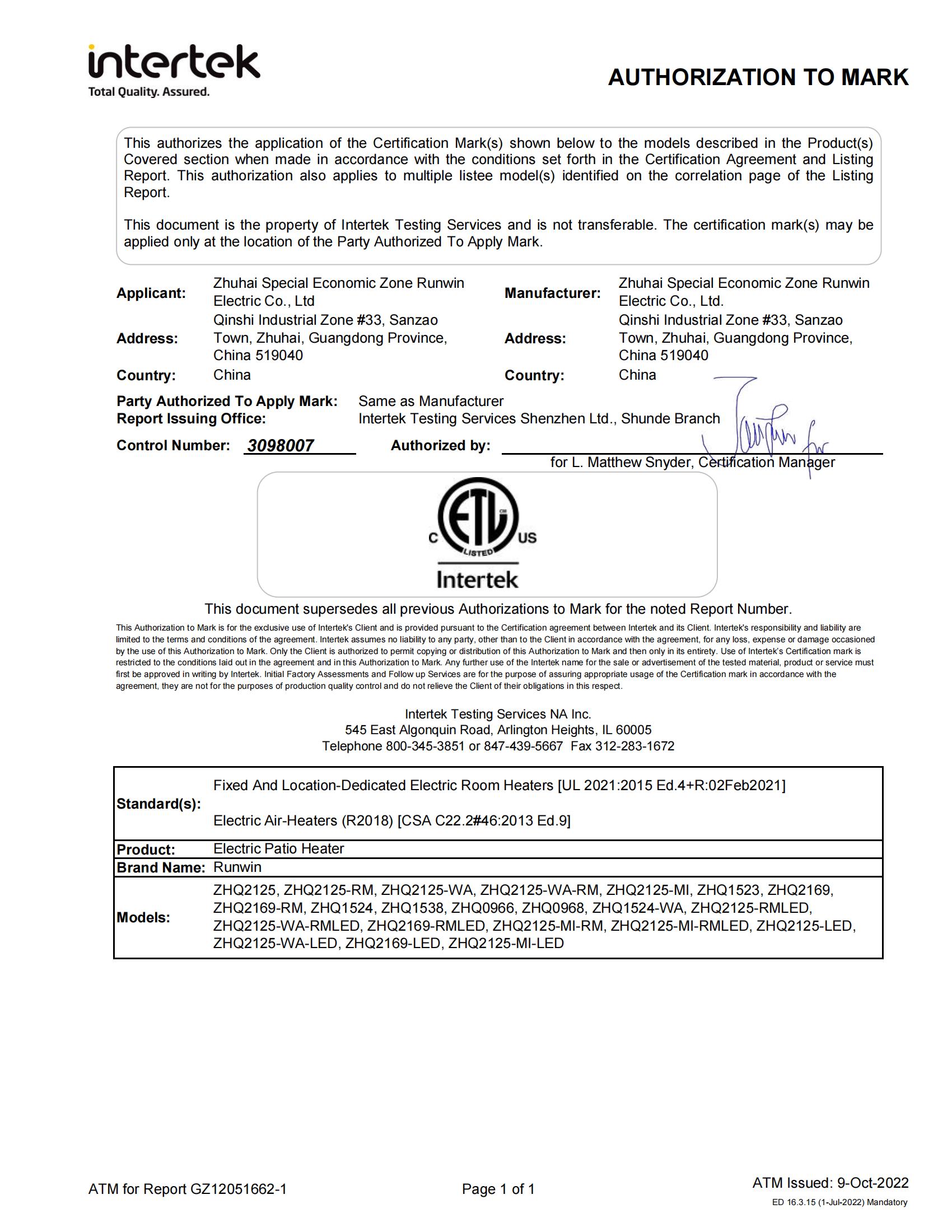 Zhuhai Special Economic Zone Runwin Electric Co., Ltd
